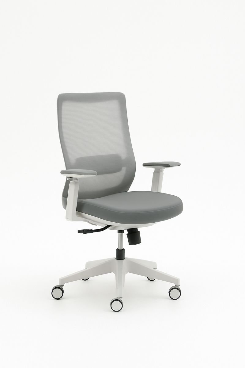 – Respaldo y Asiento: marco estructural de polipropileno con apoyo lumbar acolchado, ajustable en altura y recubierto con malla transpirable que favorece la ventilación y el confort prolongado